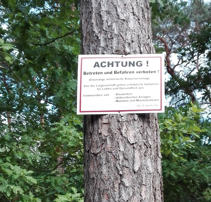 Vorheriges Bild Nächstes Bild Warnschild_Achtung!Betreten-und-Befahren-verboten!Ehemalige-militärische-Kasernenanlage