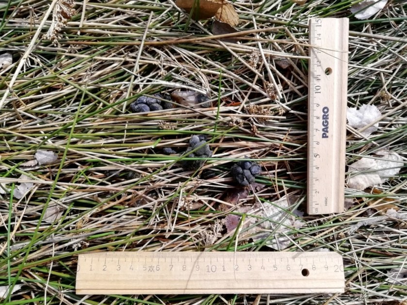Speedy hat mitgekriegt, dass ich nicht nur über Wolfspoopie begeistert bin, sondern über jede Art von Losung. So entwickelte er sich mit der Zeit zum „Spezialisten“ für Kleintierlosungen, die mit freiem Auge in der Tat schwer zu entdecken sind.