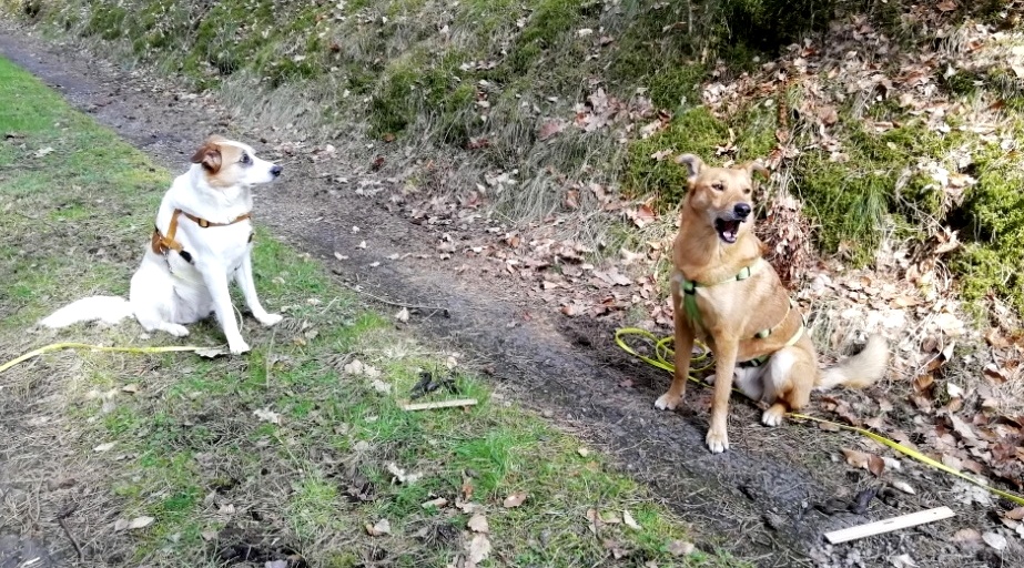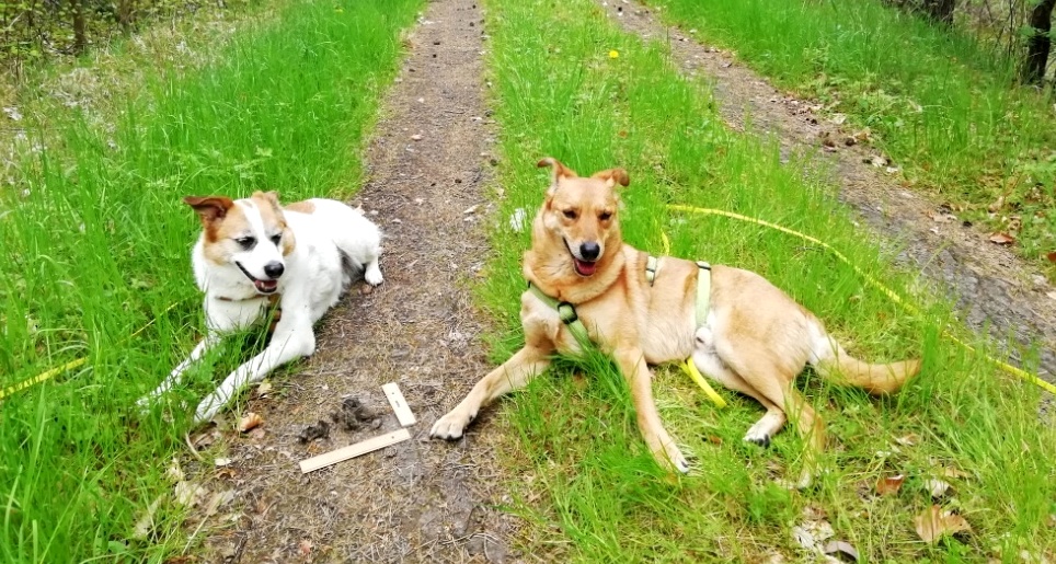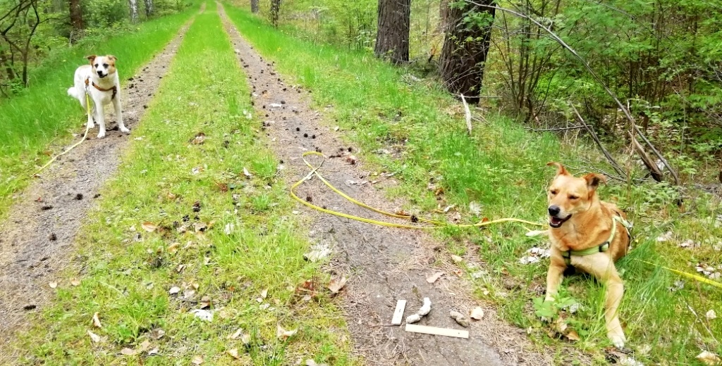 Meine Doggies Speedy und Chekotee sind mittlerweile zu wahren Wolfspoopie-Experten geworden: Ohne dass ich es extra mit ihnen geübt hätte, zeigen sie mir jede Wolfslosung an, die sie finden. Wie kam das? Wenn ich früher ein Wolfspoopie entdeckt hatte, freute ich mich jedes Mal sehr darüber und begann mich intensiv damit zu beschäftigen (Zollstab und/oder Lineale auslegen, Losung genau „studieren“ und fotografieren). Das weckte natürlich ihr Interesse, sodass sie herkamen und nachguckten, besser gesagt: nachschnüffelten. Mit der Zeit begannen die Doggies von sich aus, mir Losungen durch Hinschnüffeln und Hingucken anzuzeigen, was von mir klarerweise ausgiebig gelobt und belohnt wurde. Dabei gab ich das größere Lob und die hochwertigere Belohnung beim „Nur-Gucken“, um dieses zu verstärken. Denn wenn Hunde zu intensiv an der Losung herumschnüffeln, kann es sein, dass diese durch Hunde-DNA „kontaminiert“ wird – und das würde jede Genetikprobe unbrauchbar machen.