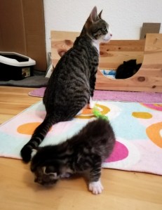 Speedy und Chekotee sind echte Musterknaben im Katzenzimmer, sehr behutsam und immer mit Respektabstand.