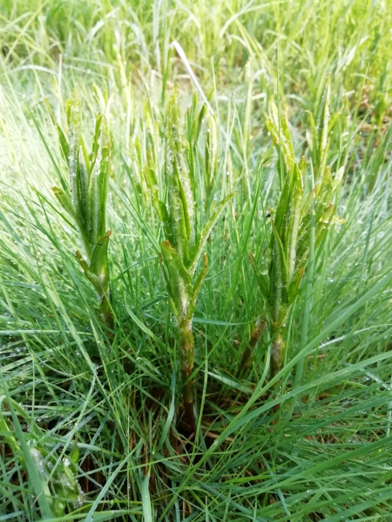 Noch eine weitere kleinblütige, aber höher als der Wassernabel wachsende Pflanze schmückt die Schwingrasenfläche von Trautzke-3: Weidenröschen (Epilobium sp.) aus der Familie der Nachtkerzengewächse (Onagraceae). „Ihren Namen verdankt diese Familie den Arten, die, wie beispielsweise die Nachtkerze (Gattung Oenothera), ihre Blüten erst abends öffnen“ (Lüder 2018, 459).