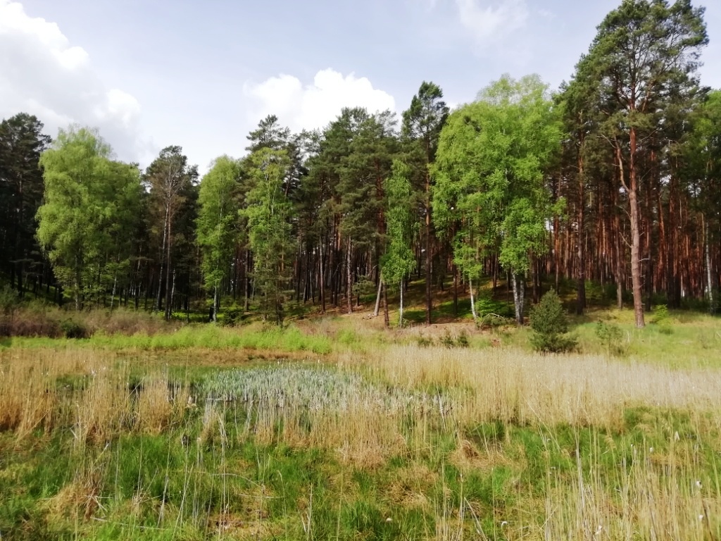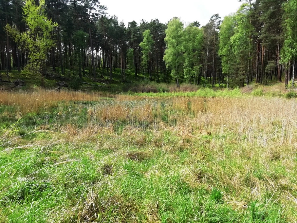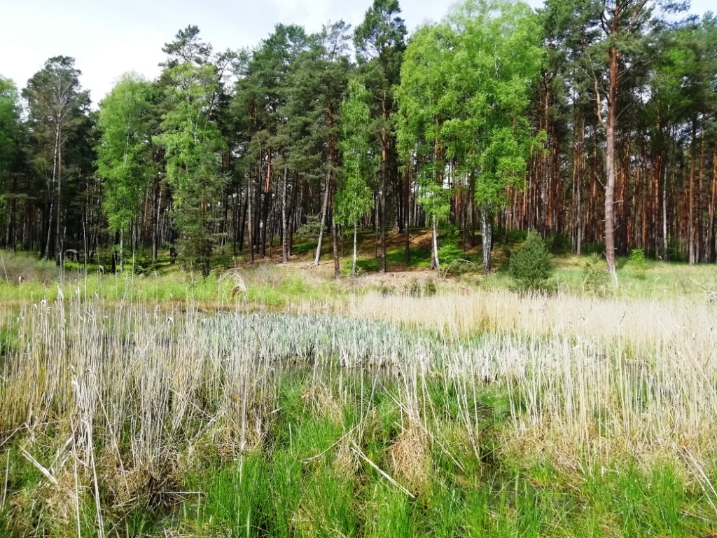 Nachdem wir bei Trautzke-5 ein wenig Rast gemacht und die Hunde ihren Durst gestillt hatten, machen wir uns wieder auf den Weg – an der Westseite von Trautzke-5 weiter durch den Wald. Und stoßen auf eine völlig „verwilderte“ Senke: meiner Meinung nach das Relikt eines Nebenteiches der früheren Drauzen-Seen.