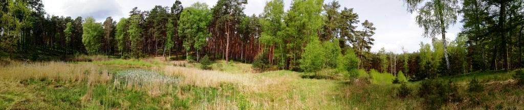 Mitten in der Blaubeeren-Senke stehend und den Blick in Richtung Trautzke-3, also nach Nordosten wendend, sieht das Panorama so aus: